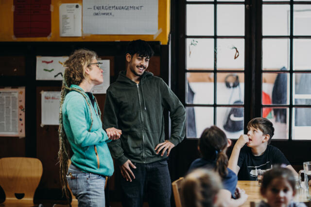 In unserer Schulgemeinschaft sind die Wege kurz. Du kannst leicht mit Lehrkräften, der Schulleitung, Eltern und anderen in Kontakt treten. Der Austausch und die Zusammenarbeit stehen bei uns im Mittelpunkt.