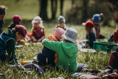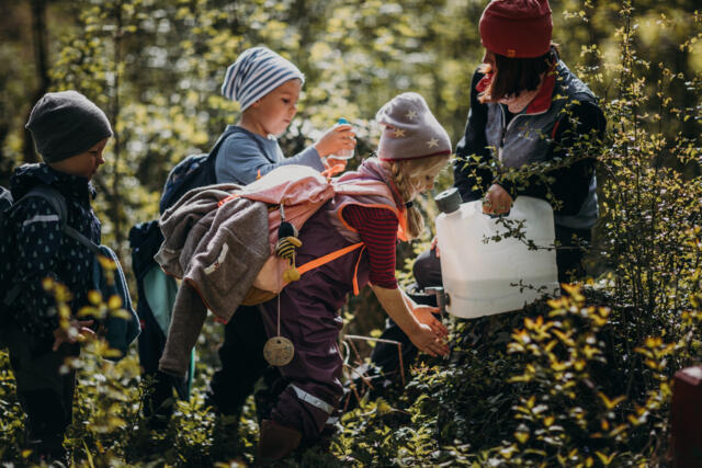 Die Kinder erleben die Natur und deren Gesetze am eigenen Leib. Sie spüren, wie die Bäume im Frühling "ihren Saft anstellen", sie erleben die verschwenderische Vielfalt des Sommers, sie baden im bunten, knisternden Herbstlaub und trotzen im Winter der Kälte. Diese Eindrücke prägen die Kinder sehr und machen sie stark: als Persönlichkeiten und verantwortungsbewusst für andere und ihre Umwelt.